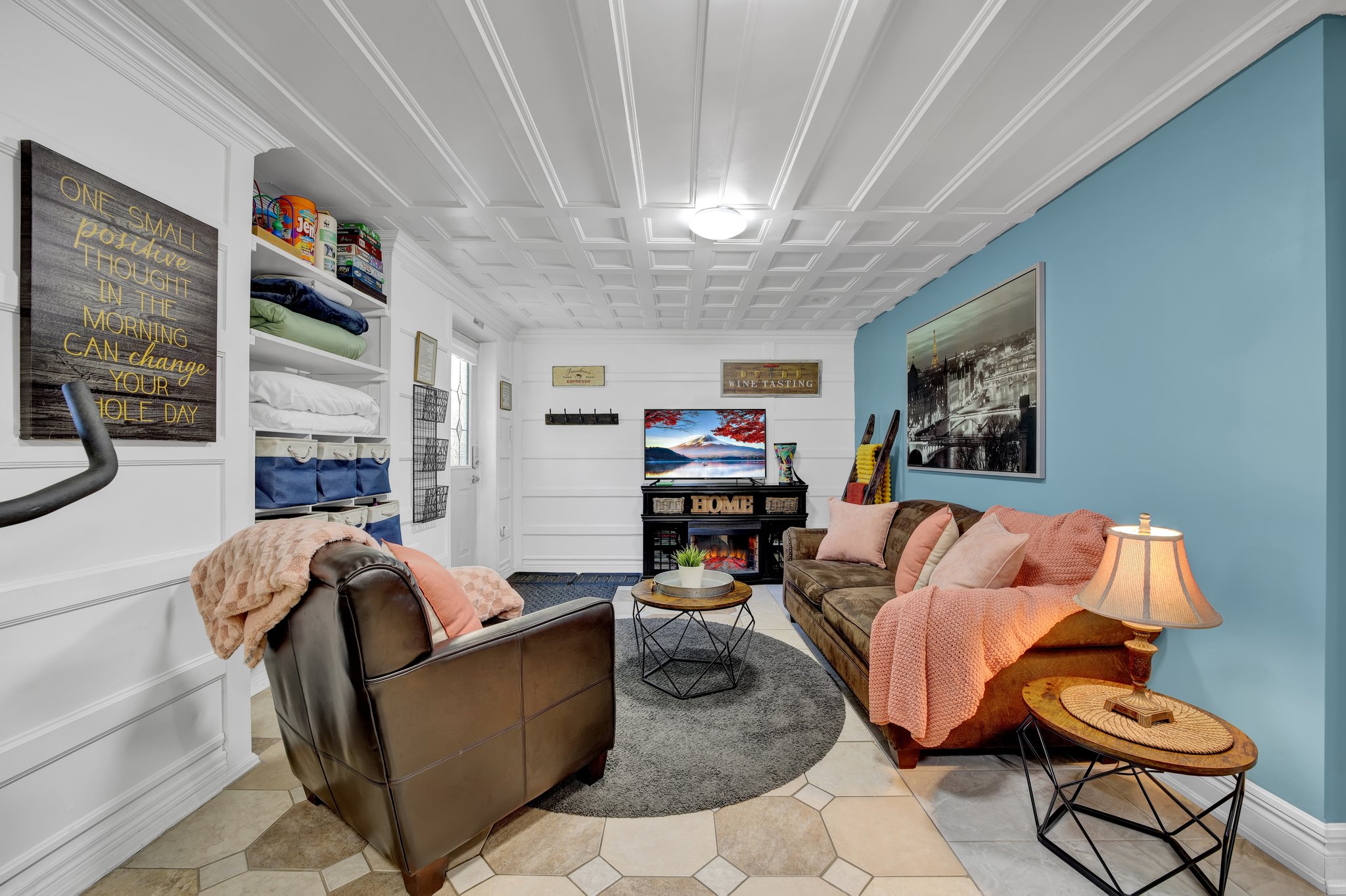 - Indoor fireplace