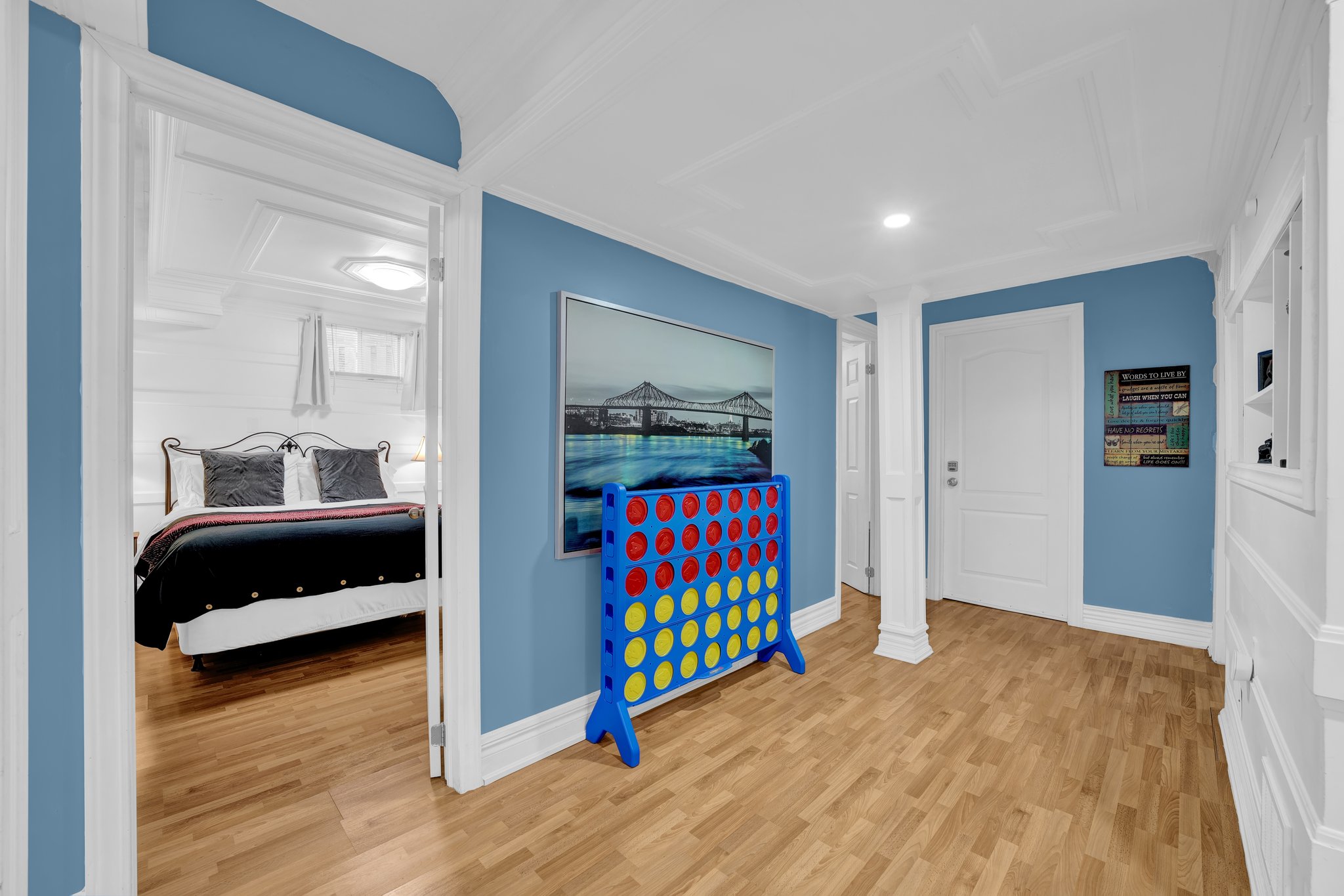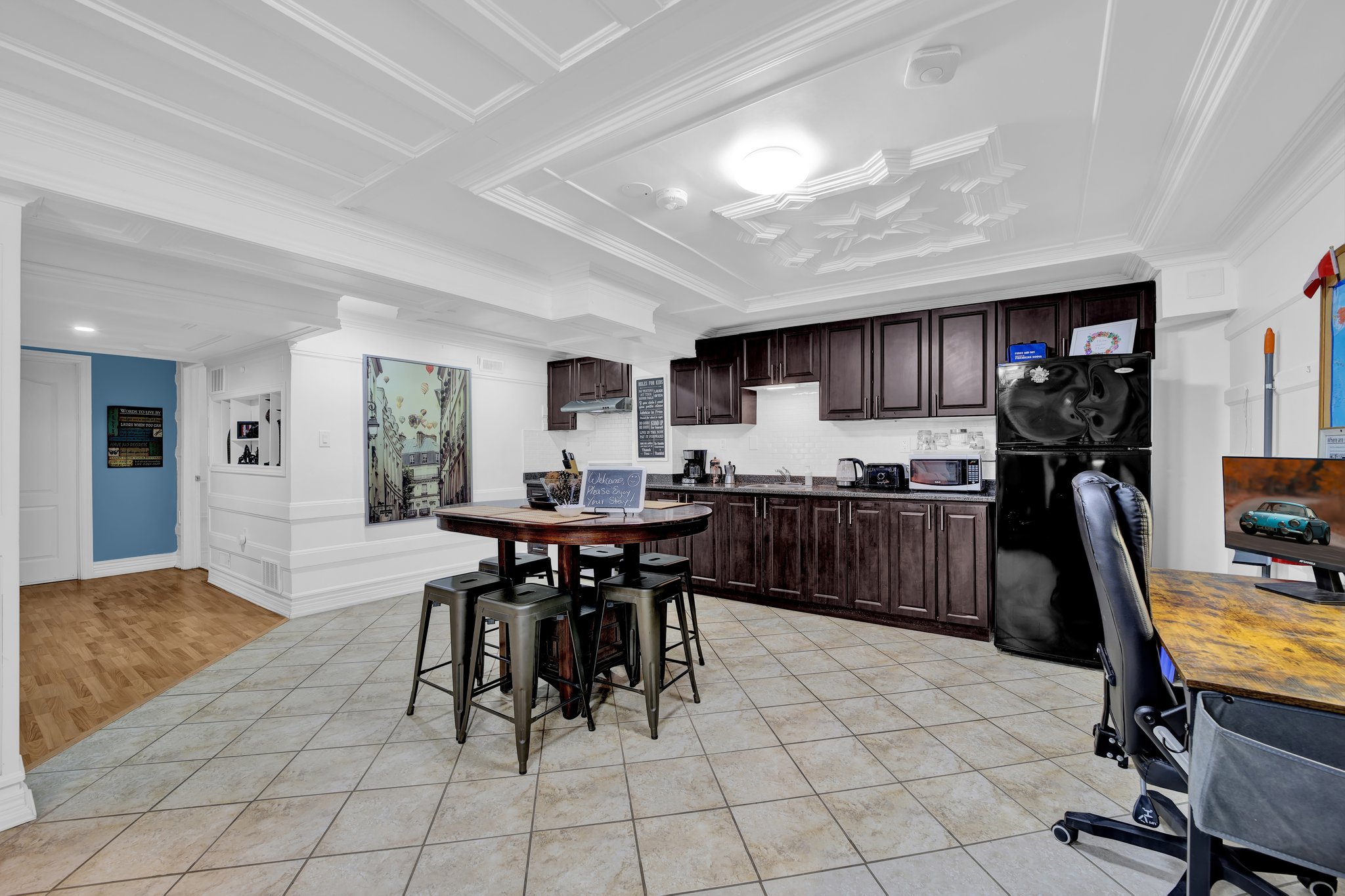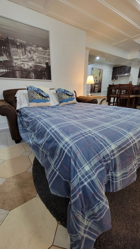The appartment is equip with everything you need, as if you were in the comfort of your own home. Very comfortable, cozy and located in a nice quiet mature neighbourhood. It is a great place to relax, rest and sleep between your events. Enjoy a board game or watch a movie on Neflix during the winter months or relax in the backyard during the summer months, well watching the kids playing in the backyard. Two TV's- A 55" TV in the family room and a 27" TV in both bedrooms to enjoy. Need to stretch your legs; go for a walk down the street to enjoy the large park and watch the kids play at the playground. The house is close to shops, malls, parks and public transportation. We also offer for our guests with small children, kids toys, crib, board games, kids books, kids dishware (plates, bowls, cups, and utensils), baby bath tub. We also offer high chair and play pen; (request only- we will make sure they are set up upon your arrival). We live in the upstairs area and we are very considerate and conscious to the noise level for our guests downstairs. Please No Parties, events and gatherings. Noise travels very easy. Please Note: For guests staying 28 nights or more, we will provide a complimentary starter supply of essentials. After the initial supply, it will be the guest’s responsibility to replenish these items as needed. Examples include: Toilet paper, Paper towels, Laundry detergent, Shampoo, Conditioner, Body wash, Dish soap, Lotion, and other basic household supplies.